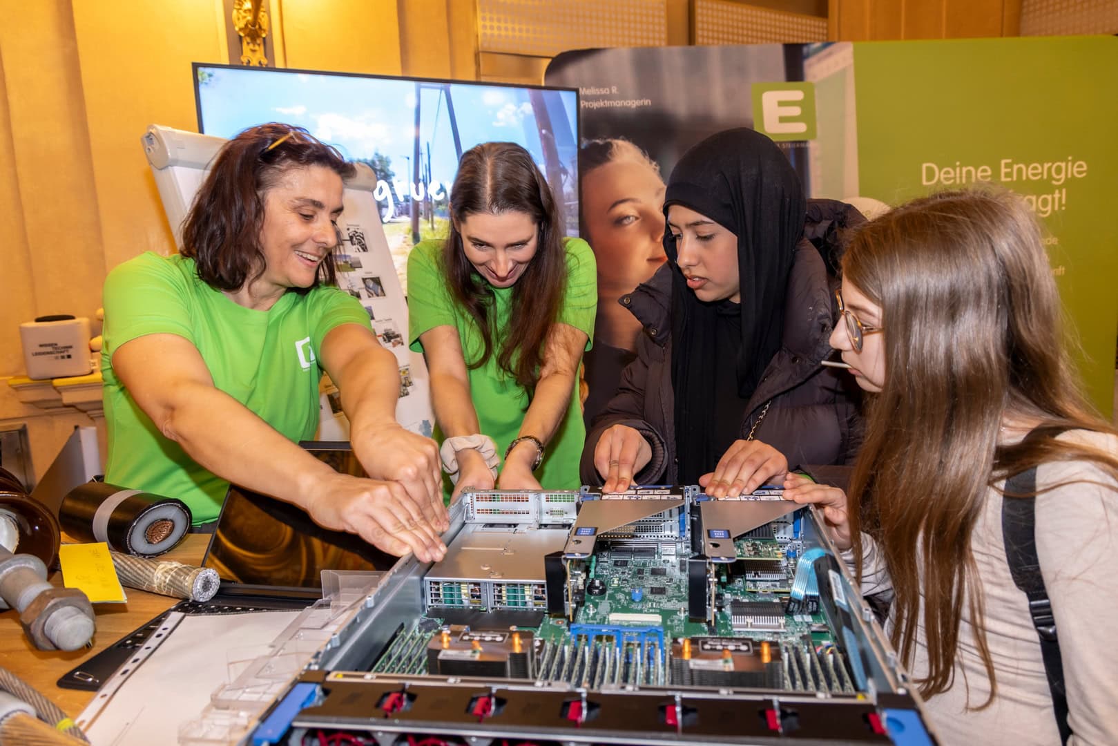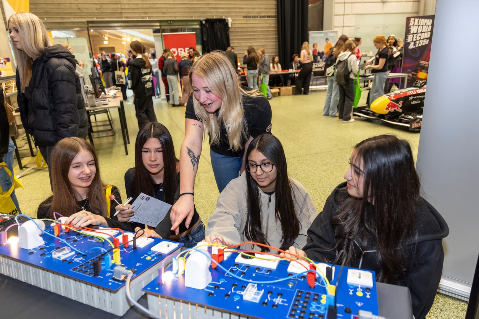 Bereits zum vierten Mal gastierte unser Girls! TECH UP-Erlebnistag in Graz. Für rund 600 Schülerinnen der Unter- und Oberstufe hieß das: spannende Technologien an zahlreichen Mitmachstationen selbst ausprobieren, mit weiblichen Vorbildern ins Gespräch kommen und nützliche Infos zu Jobs und Ausbildungen in der Elektro- und Informationstechnik erhalten. Dabei wurde ein Modellhaus mit Erneuerbarer Energie versorgt, Sound mit Künstlicher Intelligenz (KI) kreiert, das eigene Können beim Schweißsimulator unter Beweis gestellt und vieles mehr. Zum ersten Mal gab es auch ein Rennauto zu bestaunen.